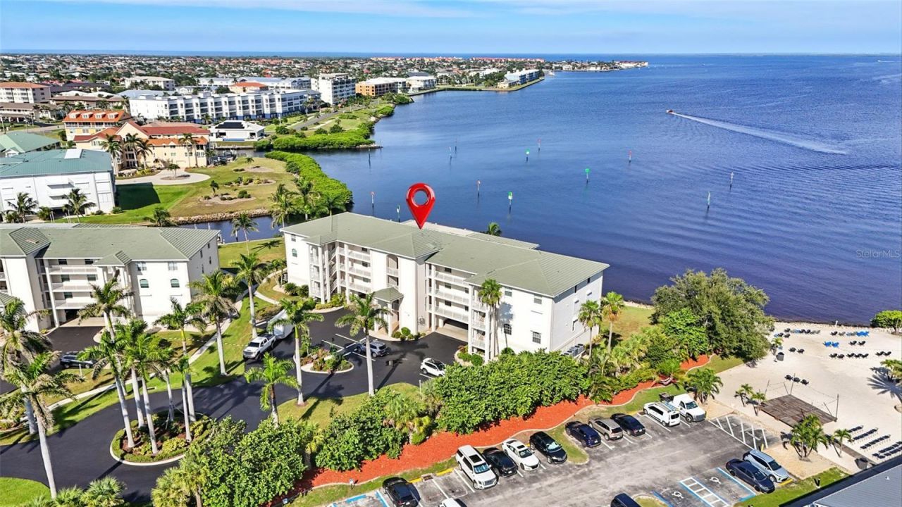 Now offered with a significant price reduction, this rarely available top-floor, end-unit residence delivers commanding, unobstructed views of Charlotte Harbor that are nothing short of breathtaking. From the moment you open the door, the expansive water views immediately draw you in, setting the tone for a coastal lifestyle defined by beauty, serenity, and connection to the outdoors.Enjoy year-round sunsets that paint the sky each evening, peaceful mornings with coffee overlooking the harbor, and unforgettable evenings entertaining friends and family as boats glide by below. Abundant marine life-including a variety of fish, playful dolphins, and gentle manatees-showcases the very best of Southwest Florida living.This spacious 3-bedroom, 2-bath top-floor corner unit features an open, airy layout with vaulted ceilings, abundant natural light, and a fully enclosed, climate-controlled balcony designed to maximize the stunning harbor views. The large primary suite is a true retreat, offering serene water views and ample space to unwind. The upscale, stunning primary bath features modern finishes, a dual vanity, vanity tower, and a beautifully tiled walk-in shower-designed with both elegance and functionality in mind. Additional highlights include elevator access, a deeded dock, hurricane-rated windows and sliders, a whole-house water treatment system, a separate laundry room with added storage, covered parking, and an oversized storage room with workshop space.Ideally located adjacent to Fisherman's Village and within walking distance to downtown Punta Gorda, the Harborwalk, Gilchrist Park, History Park, the library, museums, and year-round festivals, this home offers an unbeatable blend of waterfront tranquility and vibrant village living. Community amenities include a heated pool, tennis courts, pickleball courts, walking paths, and a waterfront gazebo.Don't miss this opportunity to own a rarely available top-floor end unit with commanding harbor views, where every day feels like a getaway. Schedule your private showing today.