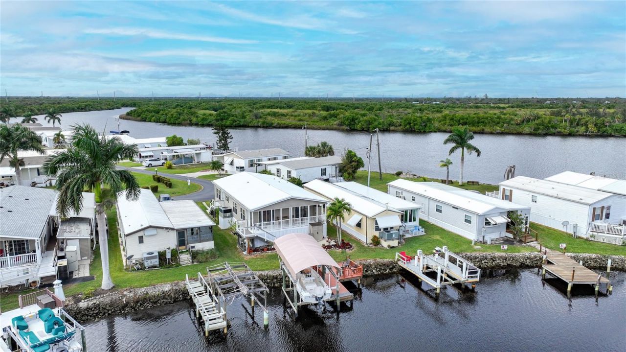 Welcome to waterfront living at its finest in Lazy Lagoon, a vibrant 55+ community! This elevated home boasts quick boating access and is a true gem for those seeking a serene and active lifestyle. As you approach, you'll ascend composite stairs to the inviting entry of this meticulously designed residence. Inside, discover a well-appointed floor plan featuring two bedrooms, a versatile den, a formal living area, a cozy family room, a charming dining room, and a practical galley kitchen. The master bedroom is a tranquil retreat, seamlessly connecting to the den and a private master bathroom. The spacious walk-in closet adds a touch of luxury, providing ample space for all your wardrobe needs. Step outside to your own waterfront oasis. A large porch awaits, perfectly positioned to capture stunning views of the water inlet. The dock beckons boating enthusiasts, complemented by a convenient boat lift and lift cover for hassle-free watercraft storage. Whether you're enjoying a quiet evening on the porch or setting sail for a leisurely boat ride, this waterfront home offers the perfect blend of comfort and recreation. Embrace the Lazy Lagoon maintenance free lifestyle - where every day feels like a vacation. Your dream waterfront retreat awaits!