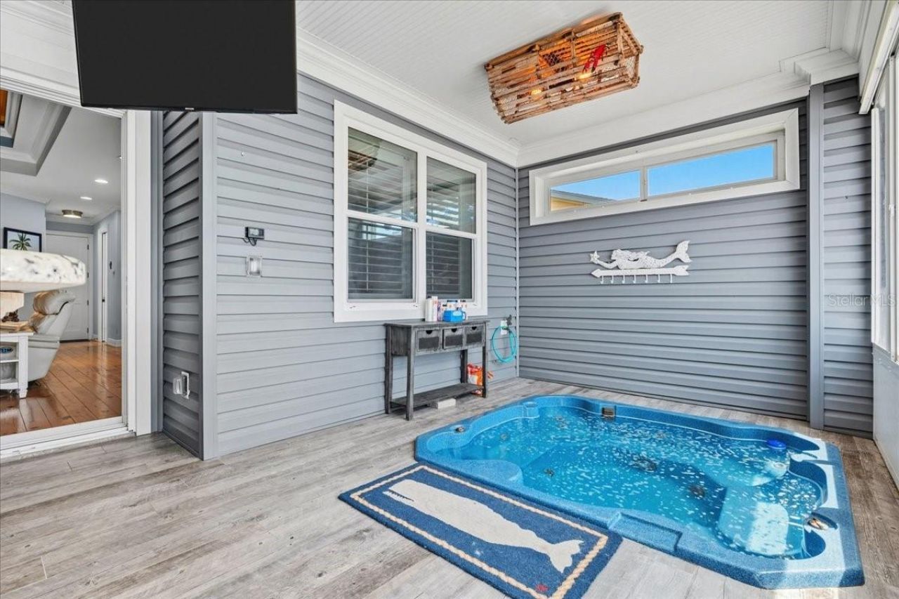 Welcome to Rio Villa Lakes - a sought-after gated 55+ community in beautiful Punta Gorda! This impeccably maintained custom built 3-bedroom, 3-bathroom home sits on an expansive oversized lot and offers over 2,700 sq ft of thoughtfully designed living space with high-end finishes and custom upgrades throughout. Enjoy a bright, open floor plan featuring pine hardwood flooring throughout the main living areas, bedrooms, and upstairs. The heart of the home is a chef's dream kitchen, complete with propane gas stove, wine cooler, Brand new refrigerator, plenty of cabinetry, and a large center island-all opening to the spacious living room with a cozy wood-burning fireplace and elegant plantation shutters throughout. Step outside to your own private retreat! The covered patio features a full bar and an in-ground spa. As well as an outdoor composite deck with built-in grill-perfect for entertaining or relaxing in comfort. This home is built for peace of mind and efficiency with Hurricane impact windows and sliding glass doors, Whole-house generator connected to propane tank, Pelican whole-house water filtration system & Brand new water heater. Additional highlights include a split-bedroom layout, indoor laundry room, attached 2-car garage, and ample storage space. Located in the maintenance-free Rio Villa Lakes community, residents enjoy access to a clubhouse, heated pool, fitness center, pickleball courts and social activities-all with low HOA fees and no CDD. Conveniently close to downtown Punta Gorda, Fishermen's Village, waterfront parks, boating, shopping, and dining --this home truly has it all!