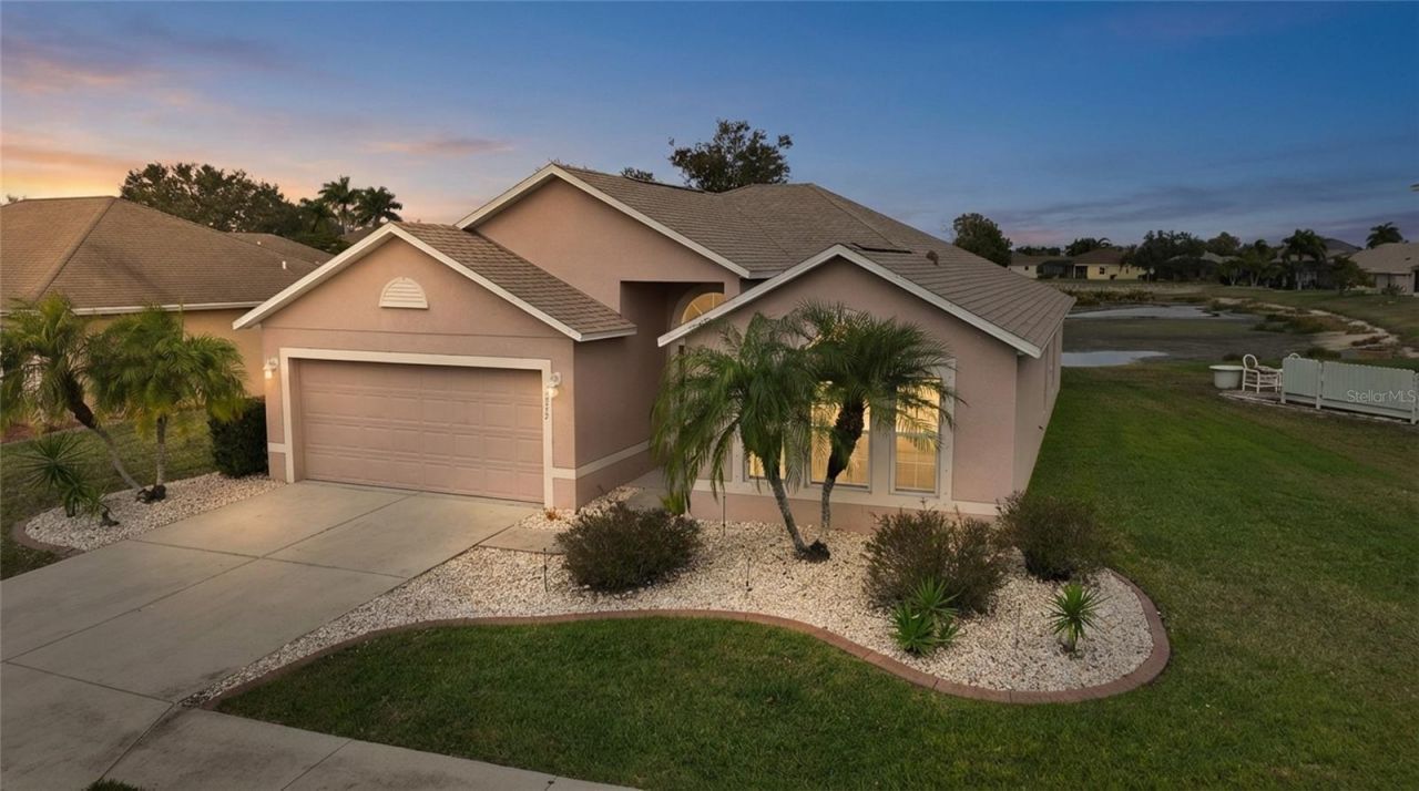 Welcome to this inviting 3 bedroom, 2 bath single family home located in the desirable Suncoast Lakes community. Offering over 1,800 square feet of comfortable living space, this residence is perfectly positioned to showcase a serene and picturesque lake view that can be enjoyed from the main living areas-an ideal backdrop for both relaxing mornings and peaceful evenings! The thoughtful layout provides spacious living and dining areas, making it easy to entertain or unwind while taking in the tranquil water views. The well appointed kitchen has plenty of cabinets for storage, a breakfast nook, and leads to your formal dining room. The primary suite offers a large bedroom, an oversize walk in closet, and leads to your en suite bathroom. The primary bathroom has dual sinks, a walk in shower, and a separate soaking tub. The two additional bedrooms provide flexibility for guests, a home office, or hobbies. The beautiful lanai provides you with a wonderful opportunity to enjoy lakefront views and a relaxed Florida lifestyle. Suncoast Lakes is a well-maintained community featuring a community pool, perfect for enjoying Florida's warm, sunny days. Conveniently located near shopping, dining, golf, entertainment, medical, and so much more.