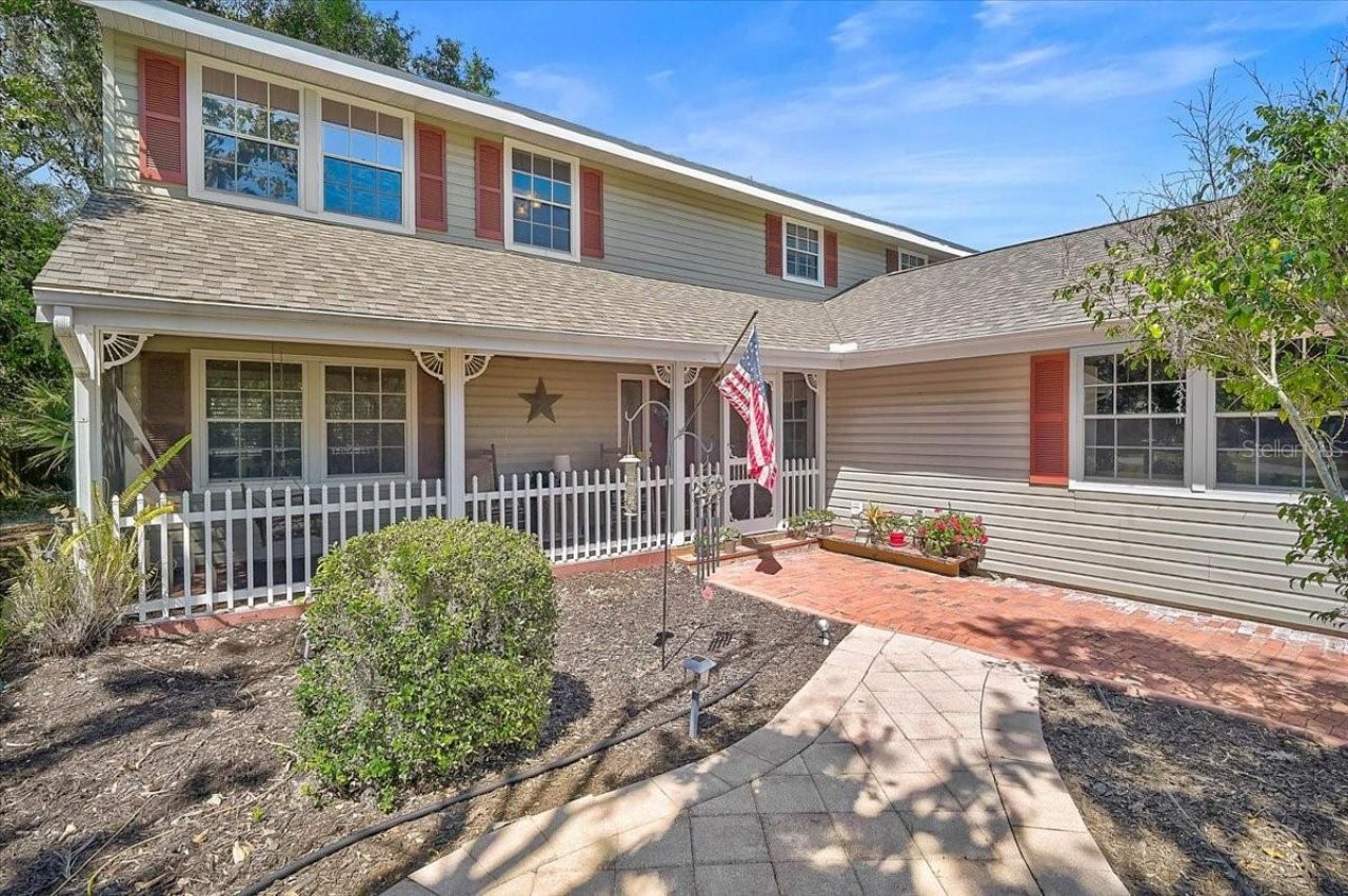 One or more photo(s) has been virtually staged. Welcome to your private country retreat-where comfort, charm, and space come together to create the perfect place to call home. Nestled on a quiet dead-end road and set on over half an acre, this inviting two-story residence offers the peace and privacy you've been searching for, surrounded by lush greenery and natural beauty. A warm and welcoming front porch sets the tone, ideal for morning coffee or unwinding at sunset. Inside, you'll find a thoughtfully designed layout featuring three spacious bedrooms upstairs and the primary suite with separate rooms which could be converted to create an ideal private space for family. There is an additional office or den space on the first level which could easily accommodate a 4th bedroom with large closet and storage. The home is perfectly suited for both everyday living and entertaining. The beautifully updated kitchen is the heart of the home, showcasing granite countertops, stainless steel appliances, and crisp white cabinetry with convenient pull-out drawers. It flows seamlessly into the family and dining areas, highlighted by rich engineered oak wood flooring that adds both style and durability. Practical touches like an upstairs laundry chute leading to the lower-level laundry room make daily living effortless, while major updates-including a new roof (2023), hot water heater (2025), and dual A/C units (2019)-offer peace of mind for years to come. Step outside and discover your own fenced backyard oasis with ample space and lighting. Designed for entertaining, the expansive brick-paver patio and soaring screened lanai create the perfect setting for gatherings. The private heated pool-with a new heat pump, outdoor hot/cold shower, fire pit, and fully fenced yard-delivers a true resort-style experience right at home. Additional highlights include a spacious garage with a hurricane-rated door, ample storage, a whole-house attic fan, and on the opposite side of the home a private outdoor area complete with its own porch with dedicated power for future self-contained spa and shell deck. The well on the property has a new tank and services 6 water bibs around the exterior. Lovingly maintained by its original owners, this home combines tranquil country living with everyday convenience-just minutes from shopping, dining, an organic farm, and walking distance to Gocio Elementary School. Don't miss the opportunity to experience this exceptional property-be sure to explore the 3D and aerial tours.