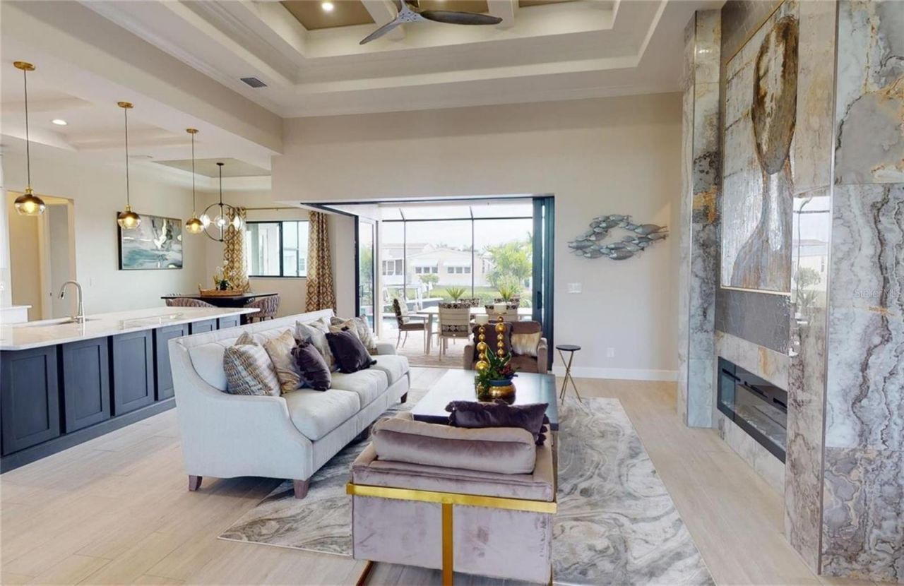 Under Construction. Welcome to Windward Isles, Punta Gorda's newest maintenance-free waterfront community featuring 24 luxurious sailboat-access homes! This under-construction, never-lived-in residence offers a modern split-bedroom floor plan with high-end finishes and exceptional attention to detail throughout.This spacious home features three generous bedrooms, three full bathrooms, a formal dining area, massive great room, and a versatile bonus den/office. The gourmet kitchen is designed for both style and functionality, including 42 wood upper cabinets with accent glass inserts, a tiled backsplash, granite countertops, and a full stainless steel appliance package including a hood, oven, microwave, cooktop, refrigerator, and dishwasher. The luxurious master suite includes an expansive master bathroom with dual vanity, tiled shower, and large walk-in closet. Interior highlights include porcelain tile flooring throughout, an electric built-in fireplace, tall ceilings with recessed trays, coffers, and grids, crown molding, designer fixtures, and 5 baseboards. Step outside to your private outdoor oasis featuring a covered paver lanai, heated pool and spa, and 90-degree sliding glass doors that maximize natural light and views of the picturesque canal. The exterior boasts a seawall with boat lift and wood dock, perfect for boaters, along with a paver driveway and walkway, stone accents, high-impact windows and doors, tiled roof, irrigation system, and lush landscaping. Windward Isles offers a maintenance-free lifestyle with HOA-covered services including lawn care, irrigation, tree trimming, pest control, and fertilization. Located just minutes from Charlotte Harbor and the Gulf of Mexico, with easy access to Boca Grande, Fisherman's Village, and Downtown Punta Gorda, and close to dining, shopping, and entertainment, this is the ideal place to call home.Seasonal rentals are allowed, making it an excellent investment opportunity. Additional homesites and models are available. Developer financing is available at 5.99% for a 30-year fixed rate.