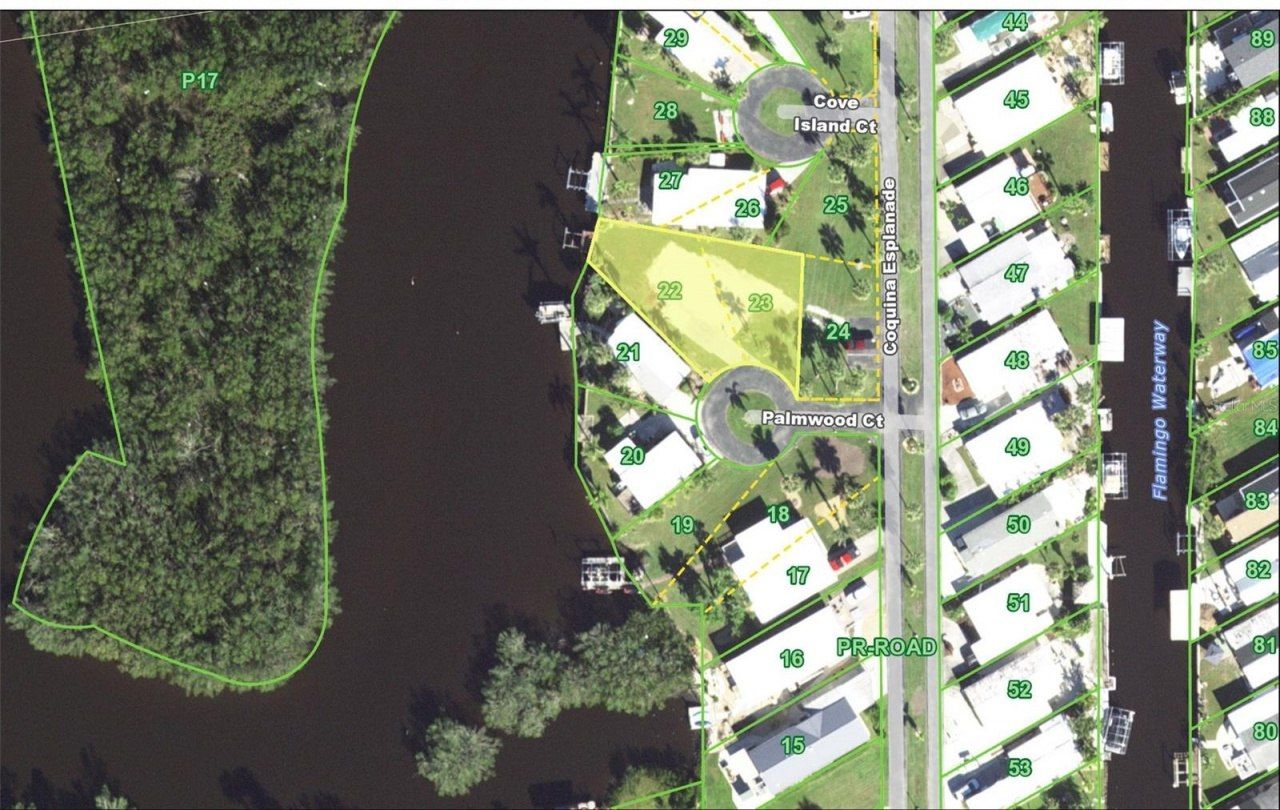 Parcel with TWO WATERFRONT ADJACENT LOTS (#22 and 23) located on a quiet street in a cul-de-sac in the desirable 55+ community of Pelican Harbor Mobile Home Estates. This parcel has an 84 SF wood dock and 25 foot concrete seawall. This lot is 7551 SF. Pelican Harbor has a community pool and is minutes to the Peace River by boat. This location is also minutes to I-75 and historic downtown Punta Gorda shopping, dining, medical care, waterfront parks, boat ramps, fishing piers, walking and biking paths, weekend farmers markets, art galleries, Charlotte Harbor Event Center, Fishermens's Village, events and more!